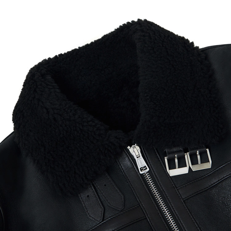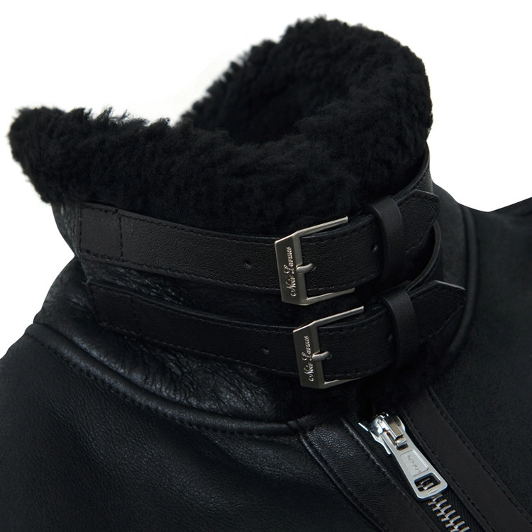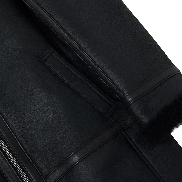 采用意大利顶级制革厂 Pistolesi 出品皮料打造的 Semi-Micro Crack Shearling 夹克。