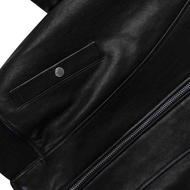 以 MA-1 的结构为基础,结合适用于皮革的比例与品牌自身的平衡感重新进行设计。