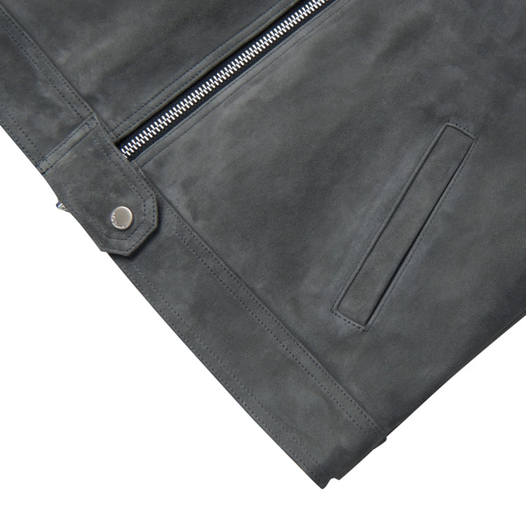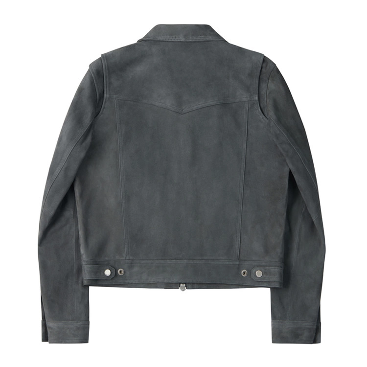 这是一款将源自西部风格的约克裁片与机车夹克的功能性传统相结合而设计的麂皮单排夹克。
