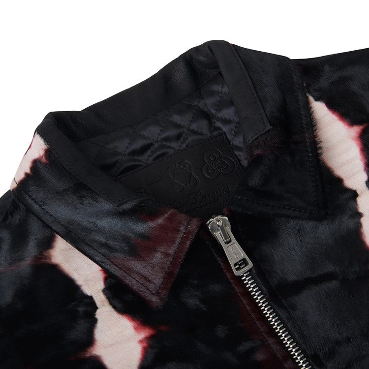 최고급 모피 테너리(Tannery)인 이태리 Pistolesi 사에서 독자 개발한 웻블루 헤어 베이비 카프스킨 (염색 전의 송치)에 legatura (레가투라)와 Tie&Dye 염색공정이 들어간 최상급 BABY CALF PARIS 아티클.
