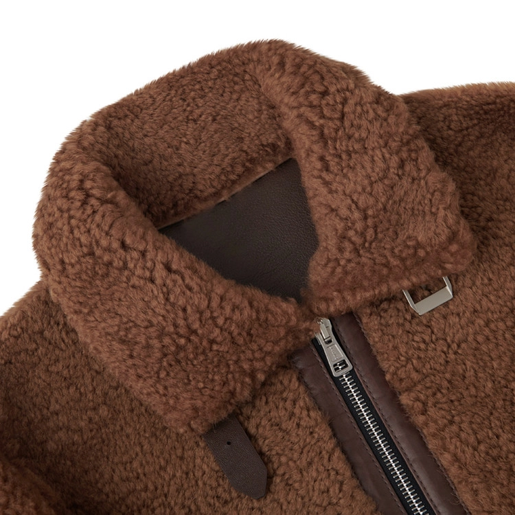 采用意大利顶级制革厂 Pistolesi 出品皮料打造的 Shearling 夹克。